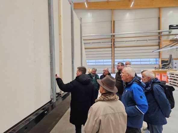 Am 13. Dezember besichtigte eine - leider überschaubare - Gruppe von Waldbesitzern, Revierleitern und FBG-Personal die erst vor drei Jahren entstandene HolzhausFabrik in Breisach. Geschäftsführer Gehringer brachte in verständlicher Weise die Arbeitsweise des Werkes nahe. Mittlerweile 65 Mitarbeiter können jährlich bis zu 100 Ein- und Mehrfamilienhäuser und Sonderbauten (z. B. Schulen) planen und bauen. Mit einer zweiten Schicht wären es sogar bis zu 180 Objekte.